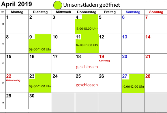 jeder 2. und 4. Samstag im Monat 10 - 12 Uhr